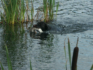 Eindrücke von der Wasserarbeit im Juli 2007. Wassergewöhnung und Bringen der Ente aus tiefem Wasser.