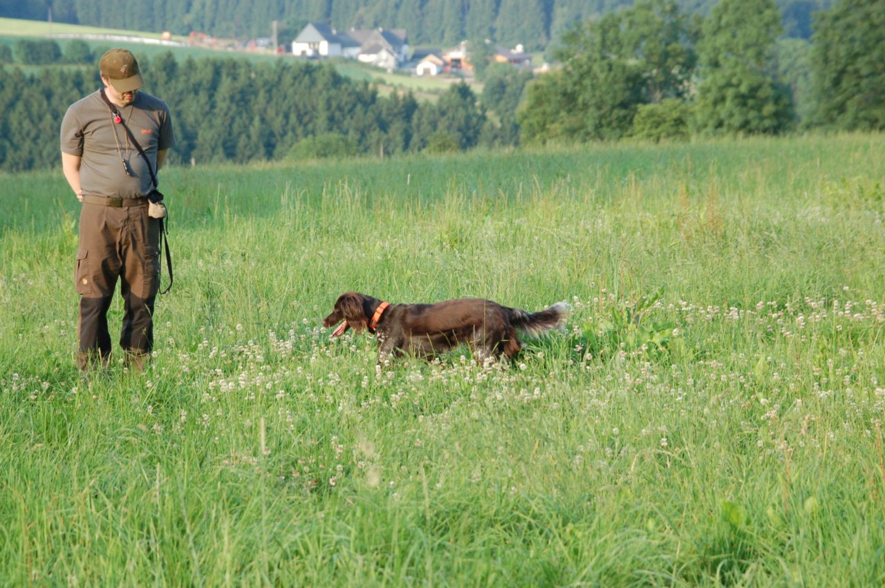 Die Prüfungstermine rücken näher. Bei den jungen Hunden wird das Verhalten beim Schuss getestet. Bei den Prüfungsaspiranten werden die Fächer gezielt in Einzelarbeit trainiert.